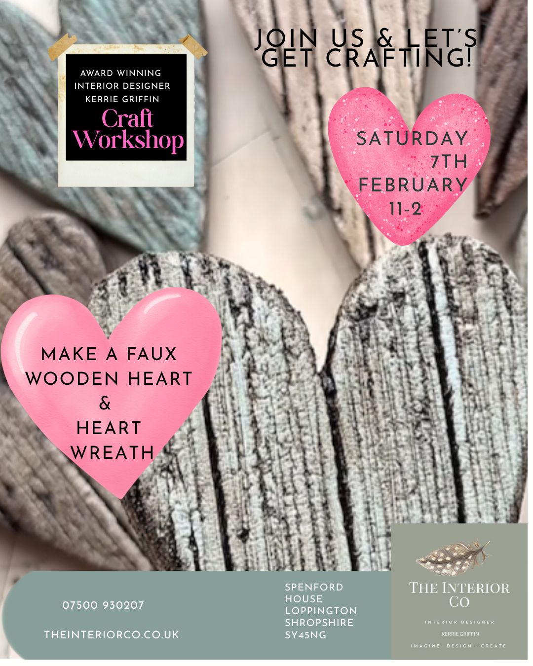 Join me for a relaxed, hands-on crafting morning at Spenford House, where we’ll be making faux wooden hearts out of recycled polystyrene. We will also be making a beautiful decorative heart to take home and hang on your wall by the end of this workshop. You'll feel inspired and have two new techniques to take home to continue creating.